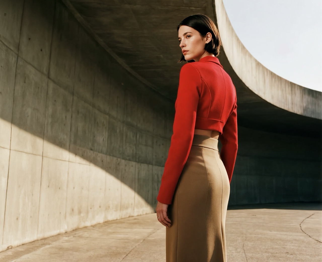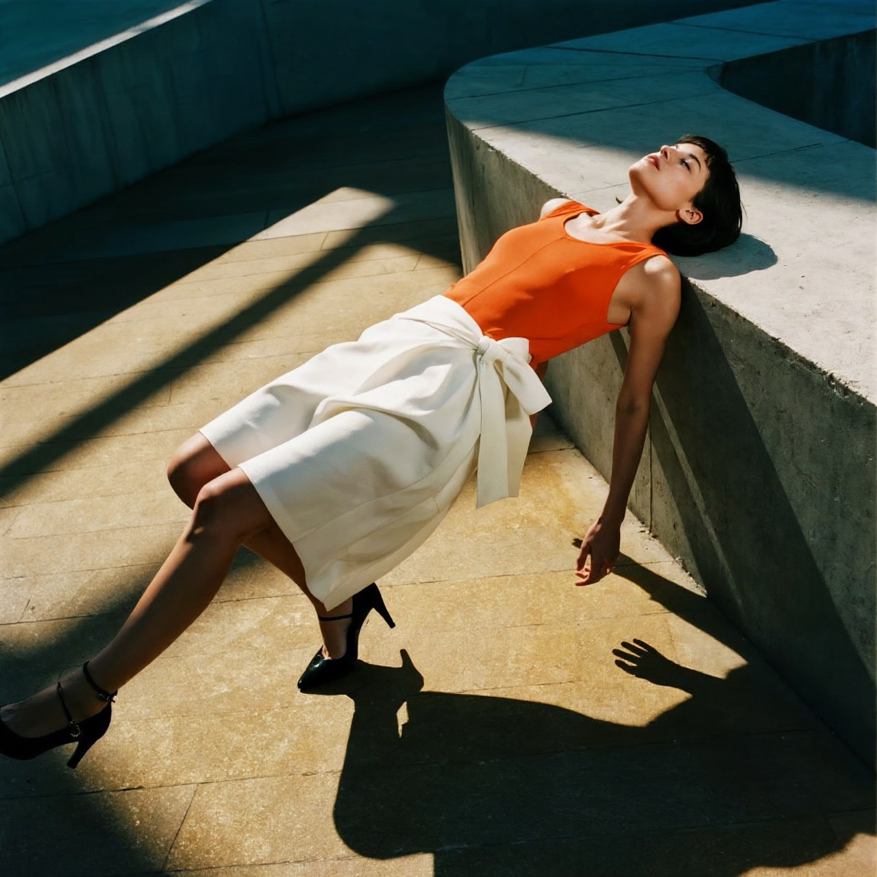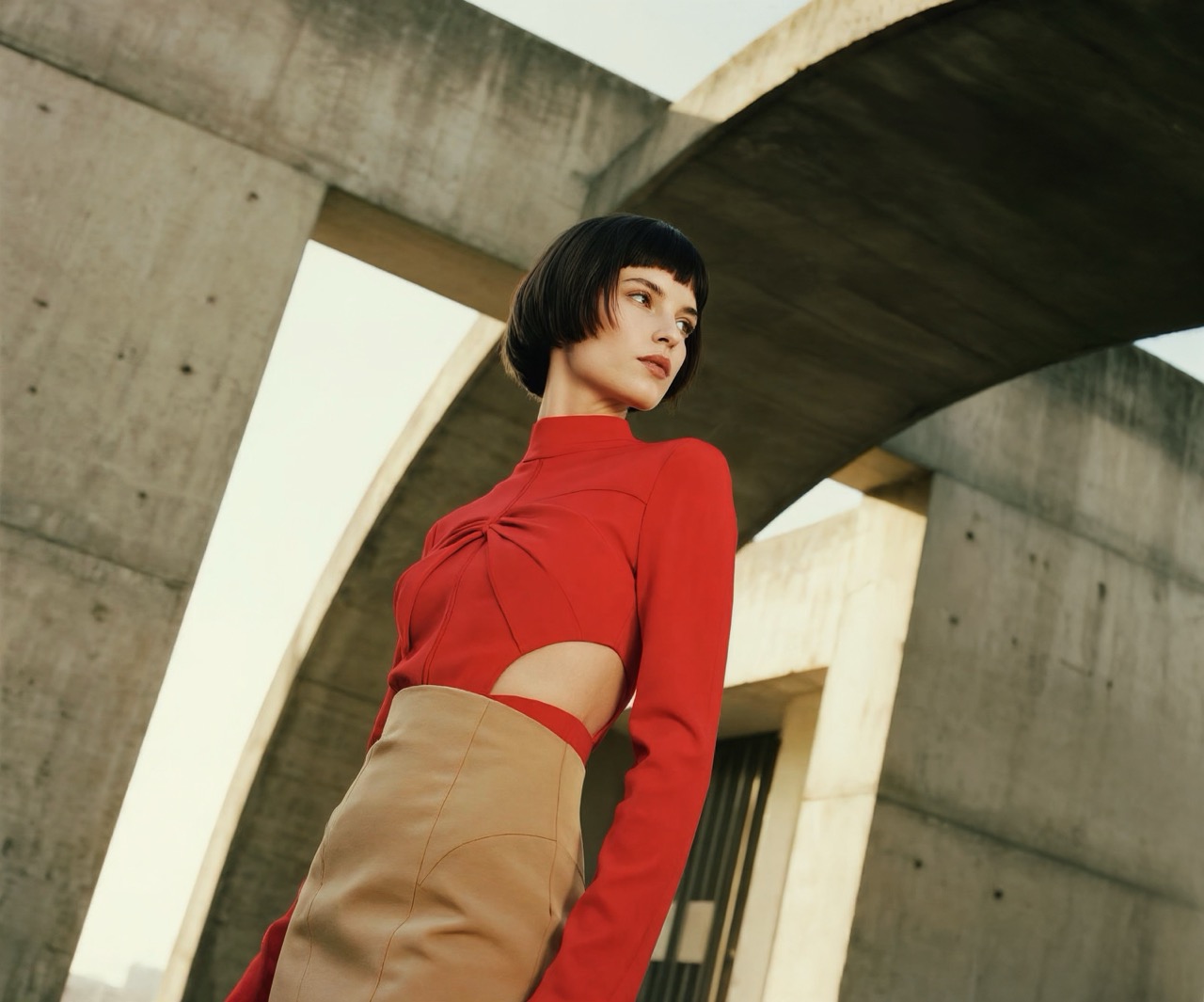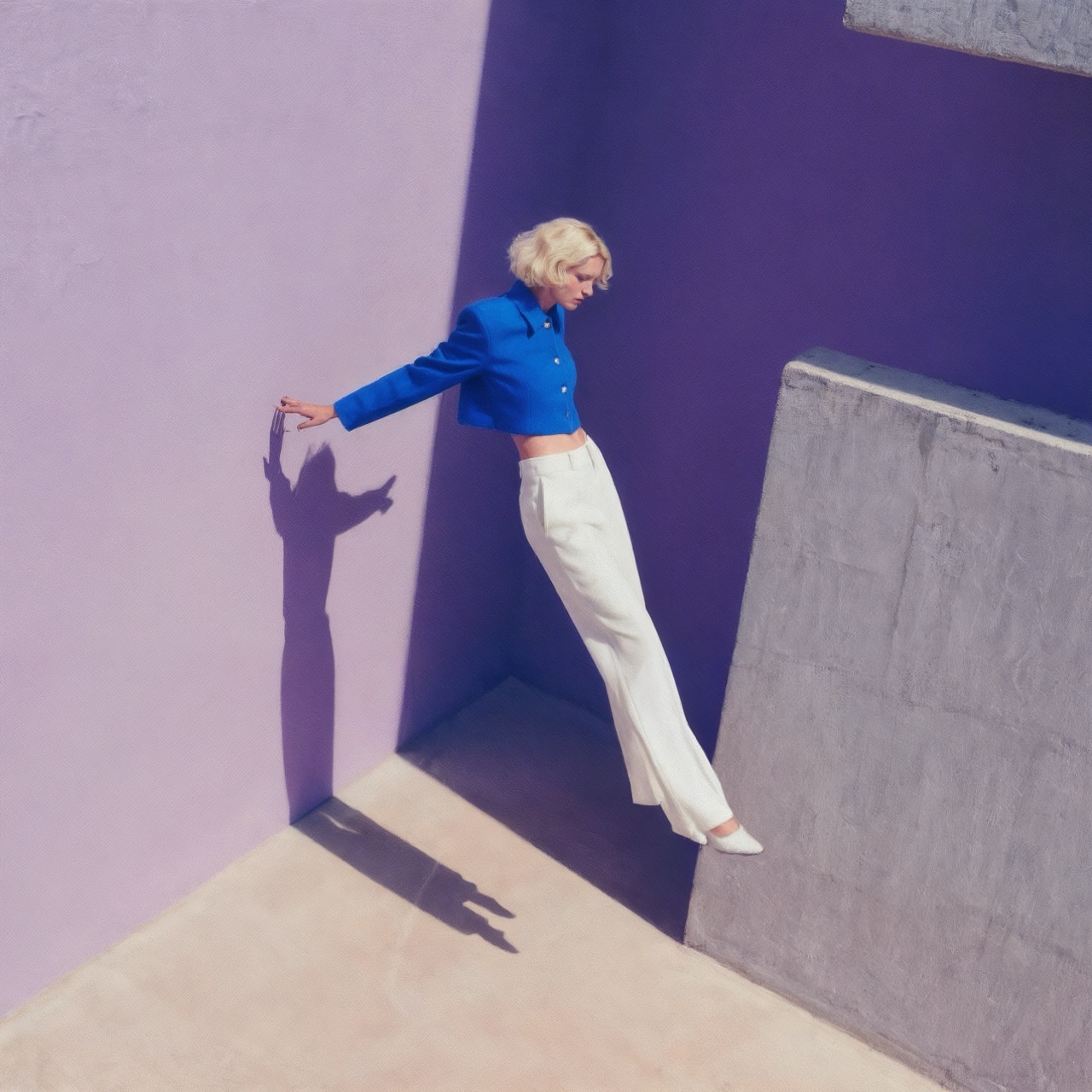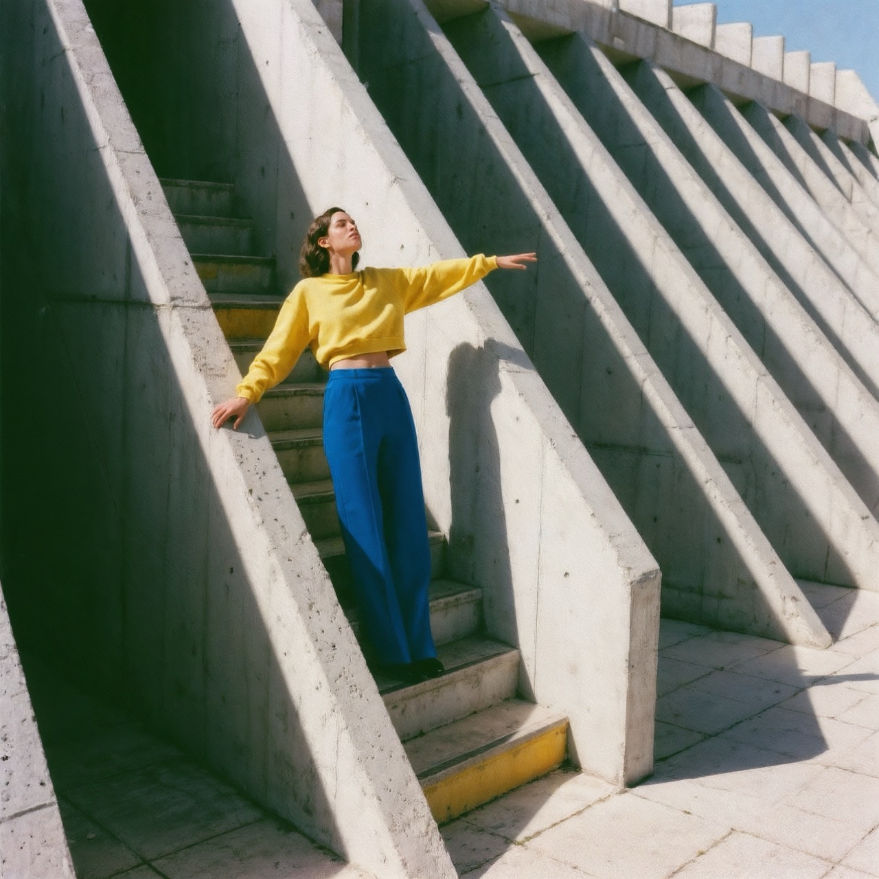 Geometry of Breath is a fashion editorial shaped by architecture and light. Each image becomes a study of posture, proportion, and serenity within modernist structures. The series transforms space into dialogue, color into rhythm, and the body into pure design. Shot as a continuum of morning clarity, it merges artistic direction, AI driven imagery, and photographic composition into a meditation on balance and form. Fashion here transcends style to inhabit the silence of concrete and the breath of light.